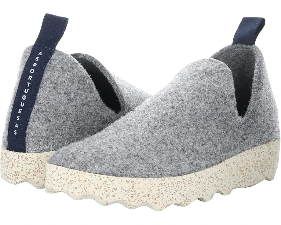 Comfort and helping out with the environment are always a great thing, and the ASPORTUGUESAS City slip-on shoes do just that. With soles made from a blend of rubber and cork that is harvested from a tree every nine years, without harming that tree. SKU: #9670862Slip-on styling with a round-toe silhouette. Pull-tab at the heel for easy on/off. 100% natural wool felt upper. Please note: wool styles have been dyed, real wool uppers from sheep.Fur origin: Spain.