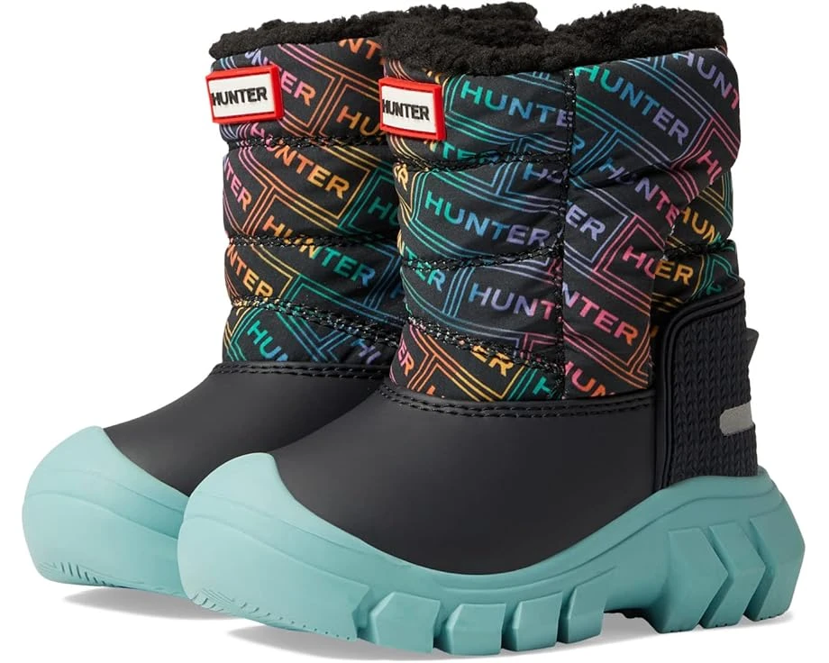 Please note: Hunter Kids lists the UK size on all footwear. For example, if you order a US 10 Toddler the size printed on footwear and packaging will be a size 9. SKU: #9787987These Hunter® Kids Intrepid Logo Rainbow Print Snow Boots are perfect for your little one to play in the snow comfortably.Man made upper.Textile lining.Removable textile insole.Zip along with hook and loop closure.Round toe.Rainbow print.Reflective patches for increased visibility.Kick spur for ease of removal.Logo patch on the collar.Can be worn in temperatures as low as -20 degree celsius.Waterproof.Man-made outsole.Imported.Product measurements were taken using size 5 Toddler, width M. Please note that measurements may vary by size.Measurements: