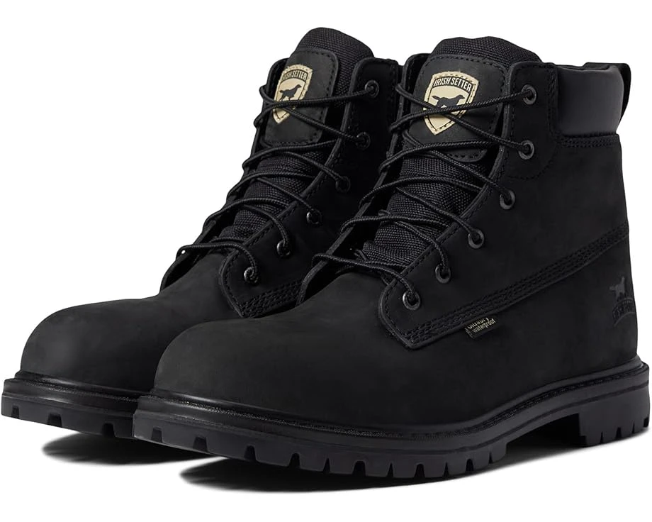 Stay protected all day wearing Irish Setter™ Hopkins 6″ Waterproof Aluminum Toe.SKU: #9624378Lace-up work Boot with an Aluminum safety toe that meets ASTM F2413-18 M/I/C and EH (electrical hazard) safety standards.Oil and Slip-Resistant direct-attach outsole meets ASTM F1677 based on Mark II test standards.Leather upper.Nylon lining.Rubber midsole.Polyurethane footbed.Removeable footbed.Round toe.Lace-up closure.Rubber outsole.Imported.Product measurements were taken using size 9, width D – Medium. Please note that measurements may vary by size.Measurements:
