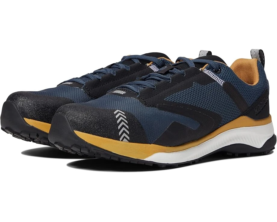 The lightweight and abrasion resistant nylon upper is made with a minimum 50% recycled plastic.Lace front closure.Landtex 100% polyester lining has been applied rockfibre® metal free technology. The kodiak® sos smell out science® odor control technology treated lining.This is an SD (Static Dissipating) rated shoe that passes both ASTM F2413 and CSA testing methods.This shoe exceeds the ASTM F2913 slip-resistant standard on the SATRA Slip Test Method.This is a nano-composite safety toe shoe that passes ASTM 2413-18 and is CSA Grade 1 on the CSA Standard Z195 method.This is a punture-ressitant shoe and passes the CSA Standard Z195 Puntcutre Resistant testing.Metal-free shoe.Scuff-resistant toe protector and heel guard gives you a comfortable walk.Anatomical micro-fiber tongue top with Lycra® sport-gusset and 3m reflective details on toe and vamp for low-light settings.Pull tab in back for easy on-off access.Branding on tongue, upper, and collar.Foot bed is polyurethane with flexible rubber outsole.Imported.Product measurements were taken using size 9, width W. Please note that measurements may vary by size.Measurements: