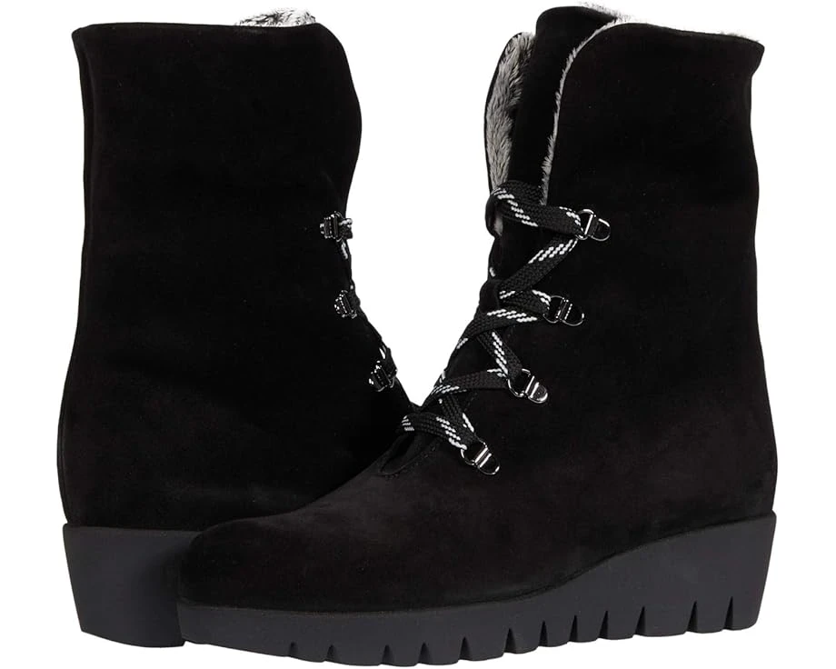 The La Canadienne® Tanya Italian waterproof suede slip-on boot with optional functional laces features a faux-fur-lined top collar that can be worn up or folded down for added style and versatility. SKU: #9413642Soft and breathable microfiber linings with a cushioned memory foam footbed for all-day support.Made in Canada.Product measurements were taken using size 9, width M (B). Please note that measurements may vary by size.Measurements: