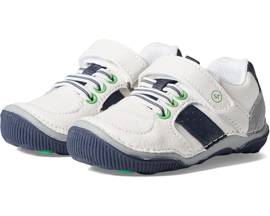 The Stride Rite® SRT Wes sneaker is a comfortable, elevated style that will have him looking and feeling his best. Crafted from a breathable leather upper with elastic laces and a hook-and-loop closure strap for a secure fit.SKU: #9087290Smooth leather upper.Sensory Response Technology™ helps mimic barefoot walking by having sensory pods on the outsole to help kids feel the ground. SRtech shoes are designed specifically for independent walkers. SRtech provides a sturdier structure and sensory sole for on-the-move toddlers curiously navigating new terrain.Featuring a padded tongue and collar, rounded edges to decrease stumbles and falls, breathable mesh lining with a treatment to reduce odors, memory foam footbed provides optimal comfort for little feet, and a flexible EVA outsole with rubber pods to help prevent slips.Imported.Product measurements were taken using size 9.5 Toddler, width XW. Please note that measurements may vary by size.Measurements: